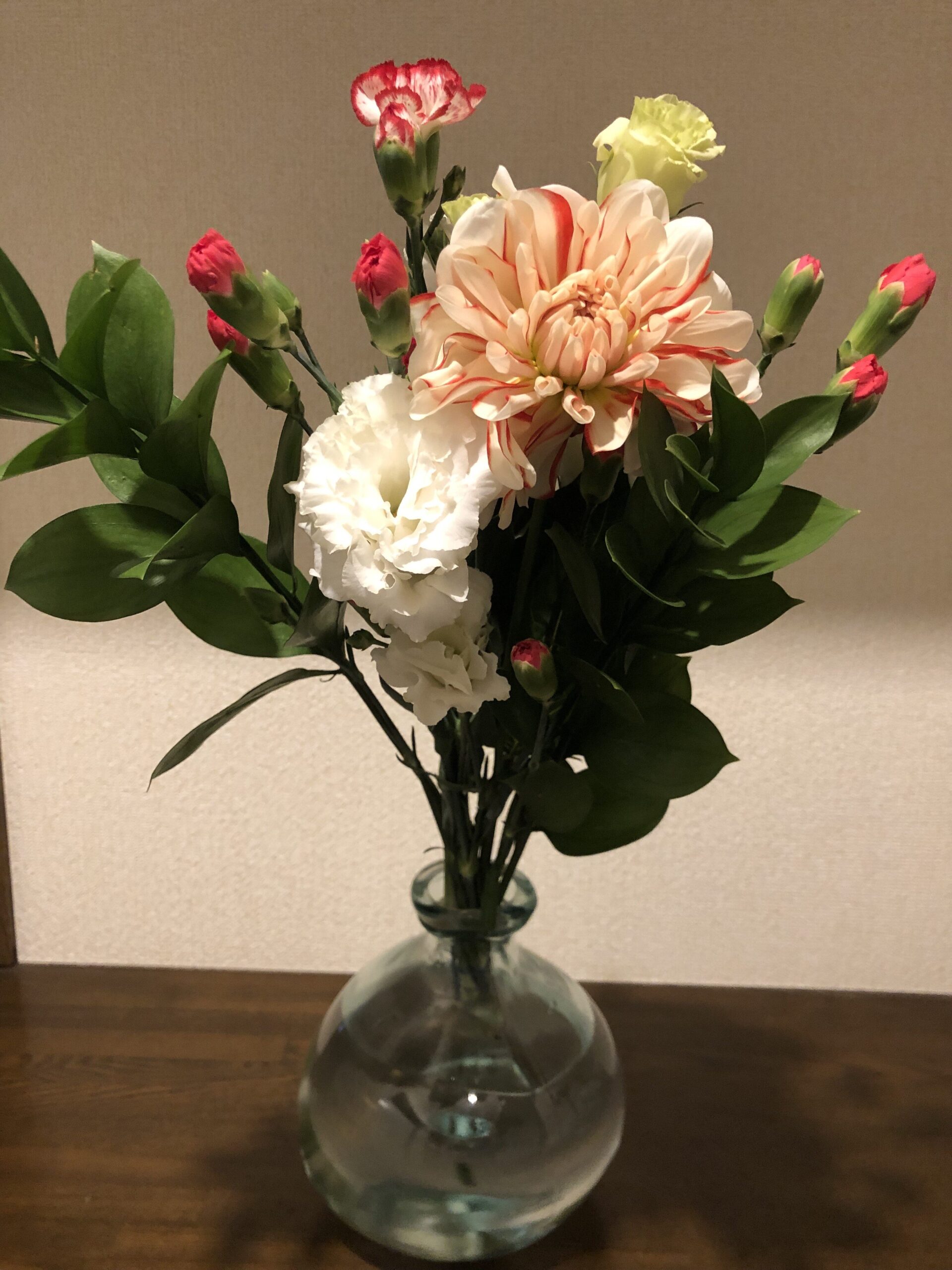 - トルコキキョウ:最初は何という花か分からなかったのですが、調べてみるとこの白いフワフワとした優雅な花はトルコキキョウでした。八重咲きのボリューム感がとても華やかです。