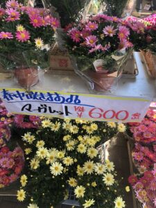 • マーガレット:600円 清楚で可憐なマーガレットが、こんもりと大きな鉢で鎮座していました。これ一つで玄関が完成しちゃいます。