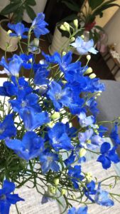 デルフィニウムのような美しい青い花を見ていると、ある素敵な逸話を思い出します。それは、「青いお花が少ないのは、神様が空と海に青い色を使い過ぎたから」というもの。