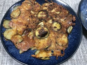 一般的にはフランス・ブルターニュ地方の「そば粉のクレープ」が有名ですが、実はジャガイモを細切りにして焼いたものや、厚焼きのクッキーなんかもガレットと呼ばれます。つまり、今回のようにナスを使って丸く焼き上げたものも、立派な**「ナスのガレット」**というわけです。