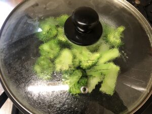 こうすることで、ブロッコリーの内部まで熱が早く通り、短時間で驚くほど柔らかく仕上がります。お湯を沸かして別茹でする手間も省けますし、何より栄養や旨味が逃げ出さず、ブロッコリー自身の水分で蒸されるので味がギュッと濃縮されるんです。