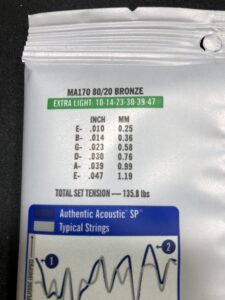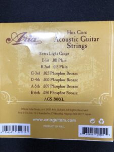 これを見ると分かる通り、Ariaのエクストラライトは、1〜3弦まではMARTINの「カスタムライト」と同じ太さなんです。それでいて、4〜6弦はカスタムライトより細く設定されています。