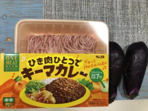 包丁・まな板いらずで大満足!「ワンミートディッシュ キーマカレー」にナスの追加で絶品に