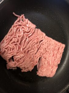 ひき肉の色が変わった時点でナス、水を入れて煮込みます。