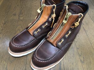 このジッパーユニット、実は実用面でも恐ろしいほどの威力を発揮します。座敷のある居酒屋や、急な訪問先でブーツの脱ぎ履きに四苦八苦するのは、膝や腰にガタが来始めたオジサンの宿命。しかし、このユニットがあれば、紐を解く煩わしさから解放され、驚くほどスムーズに、かつスマートに動作を完了できます。伝統的なワークブーツの武骨さを重んじつつ、現代の日本のライフスタイルに合わせた合理的な利便性を取り入れる。そんな「柔軟な大人の遊び」を楽しめるのも、長年このブランドと付き合ってきたからこその醍醐味です。