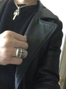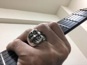 これも、娘のご主人から頂いた大切なもの。 クロムハーツとはまた違った、力強くも繊細な造形がたまりません。 あっちを付け、こっちを付け……と夢中になっているうちに、友人とのギター練習に行く前だというのに、一人でひと汗かいてしまいました(笑)。これは内緒です。