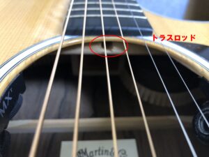 - トラスロッド (Truss Rod):ネック内部に埋め込まれた金属製の調整棒です。木材であるネックは湿度の変化や弦の張力で反ってしまうことがありますが、サウンドホールの奥にある調整口からレンチを入れてこの棒を回すことで、ネックの状態を正常に戻すことができます。