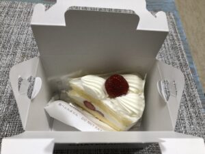 少し照れくさそうに店員さんに尋ねると、快く応じてくれました。 選んだのは、王道のイチゴのショートケーキ。